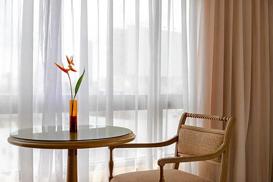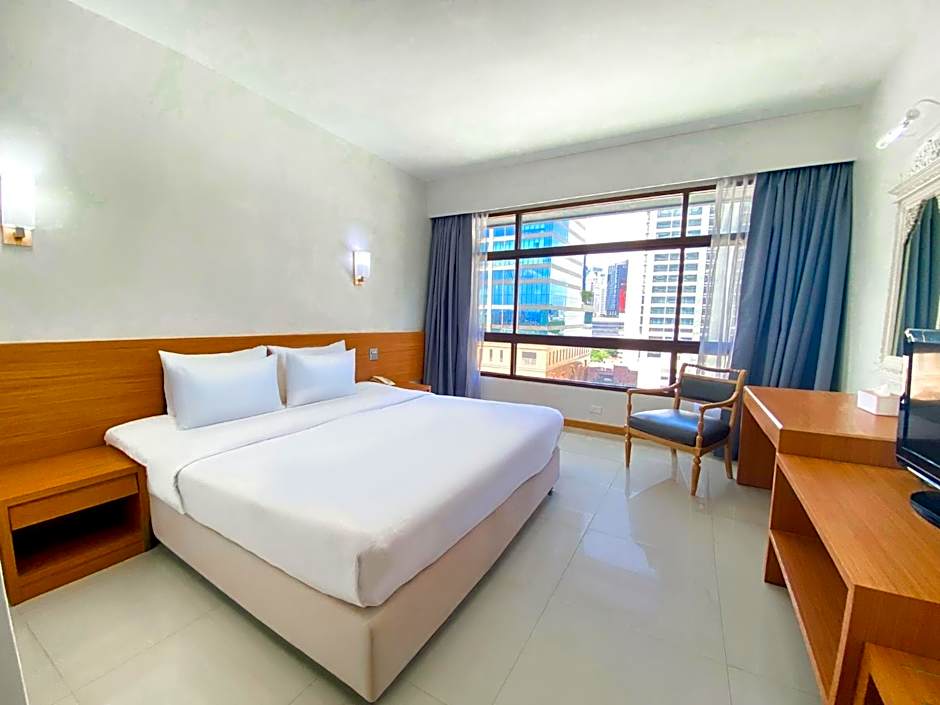 Located on the 14th floor, this suite has a modern boutique design, a separate living area and bedroom. It features a safety deposit box and panoramic views of Bangkok and Lumpinee Park.
